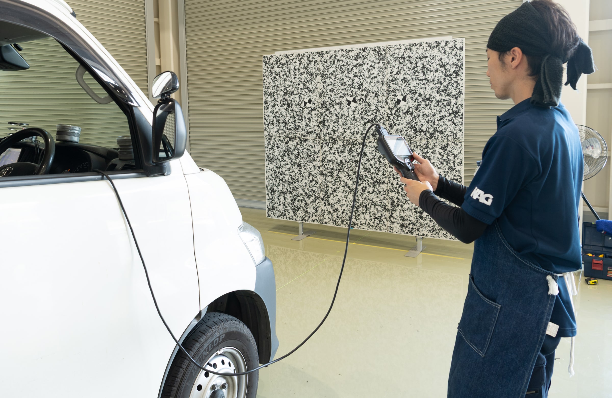 衝突被害軽減ブレーキ、車線逸脱防止支援システム、パーキング支援機能、オートクルーズなど、これらの危険を認識するための電子制御装置が、事故修理や整備などの後も正常に作動するようにセンサーの調整・校正をする非常に重要な作業です。